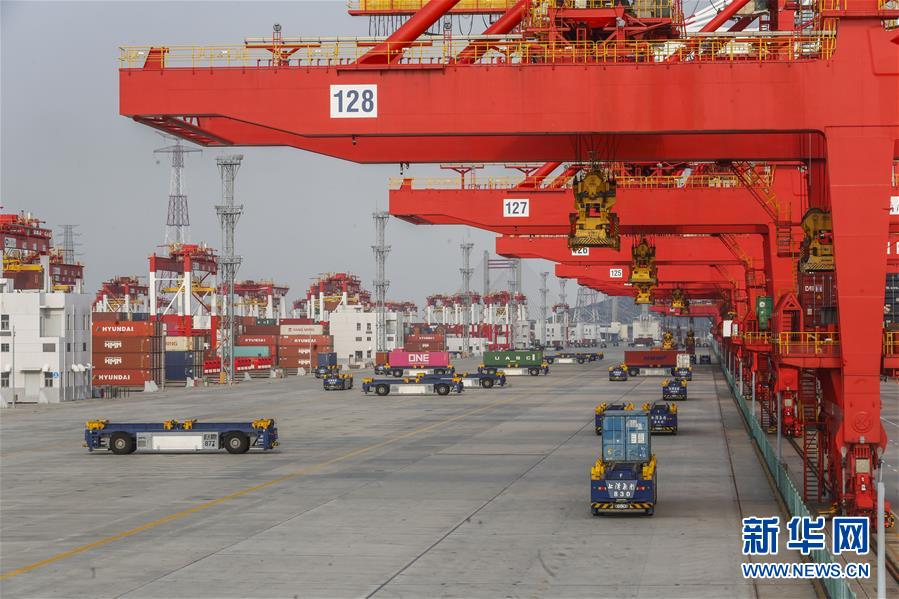 這是3月18日拍攝的上海洋山港集裝箱碼頭(無人機(jī)照片)。新華社記者丁汀攝