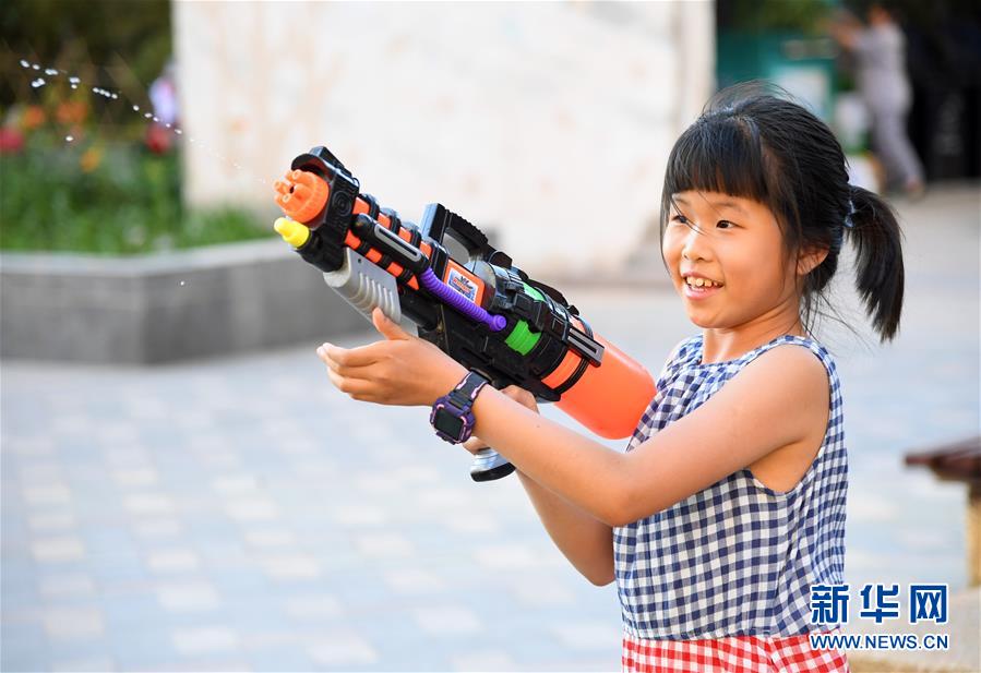 5月31日,在北京市海淀區(qū)中關村街道新科祥園社區(qū)廣場,小朋友在玩耍。新華社記者任超攝