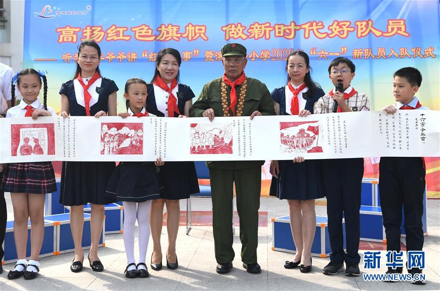 5月29日,李延年給孩子們講述紅色故事?!傲弧眹?guó)際兒童節(jié)來(lái)臨之際,“共和國(guó)勛章”獲得者、老一輩戰(zhàn)斗英雄李延年來(lái)到廣西南寧市濱湖路小學(xué)給孩子們講述戰(zhàn)爭(zhēng)年代的紅色故事,寄語(yǔ)他們好好學(xué)習(xí)、努力奮斗。孩子們向李延年贈(zèng)送了師生共繪的“紅色畫(huà)卷”,向老英雄致敬。新華社記者周華攝