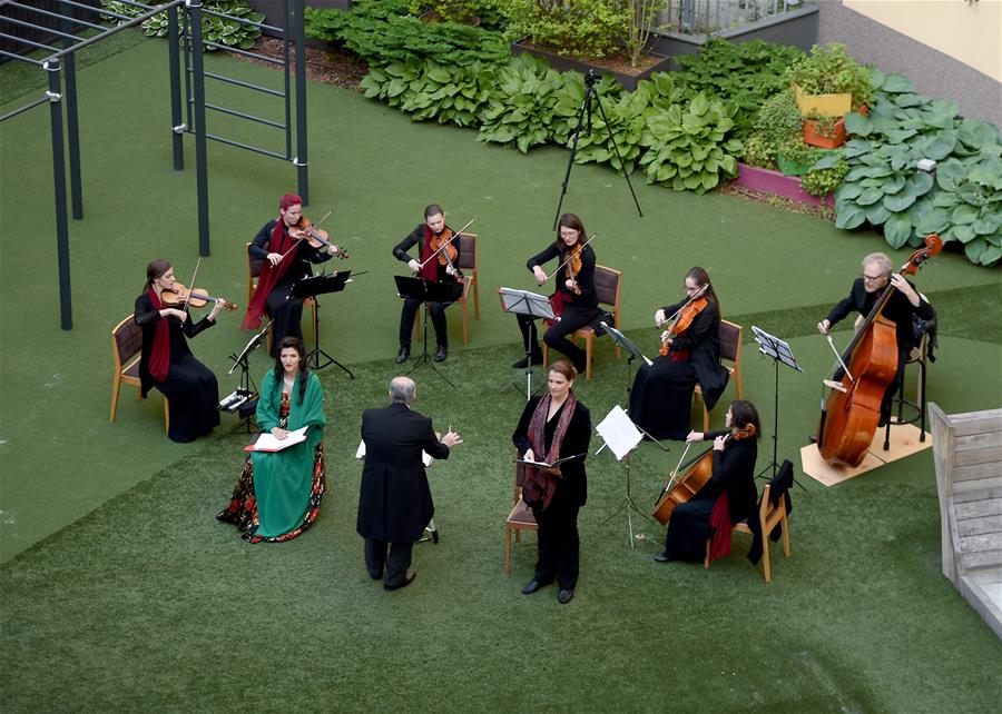 5月30日,在奧地利維也納“時(shí)代精神”酒店的庭院內(nèi),歌劇樂(lè)團(tuán)為觀眾演出。當(dāng)日,奧地利首都維也納的一家名為“時(shí)代精神”的酒店為迎接“解封”后恢復(fù)營(yíng)業(yè),在其庭院內(nèi)舉辦“窗口音樂(lè)會(huì)”。按照奧政府此前公布的“解封”時(shí)間表,從29日起,賓館酒店以及健身房、游泳池和游樂(lè)場(chǎng)等休閑娛樂(lè)場(chǎng)所有條件恢復(fù)運(yùn)營(yíng)。新華社記者郭晨攝
