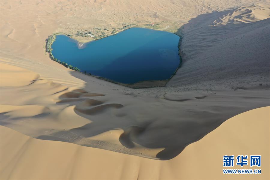 這是5月29日拍攝的巴丹吉林沙漠的諾爾圖湖(無人機照片)。新華社記者徐欽攝。