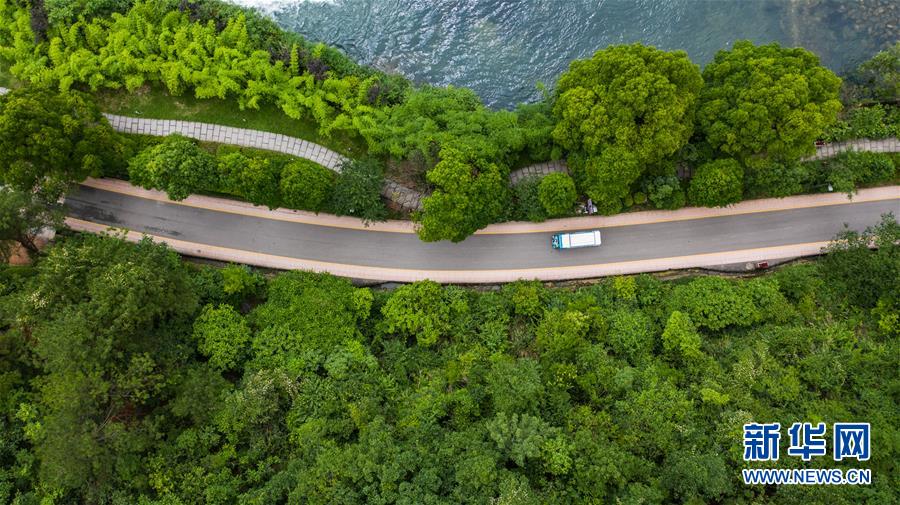 6月2日,車輛在阿哈湖國(guó)家濕地公園內(nèi)行駛(無(wú)人機(jī)照片)。初夏時(shí)節(jié),貴州省貴陽(yáng)市阿哈湖國(guó)家濕地公園草木蒼翠,風(fēng)景如畫(huà),吸引人們前來(lái)休閑游玩。新華社記者陶亮攝。