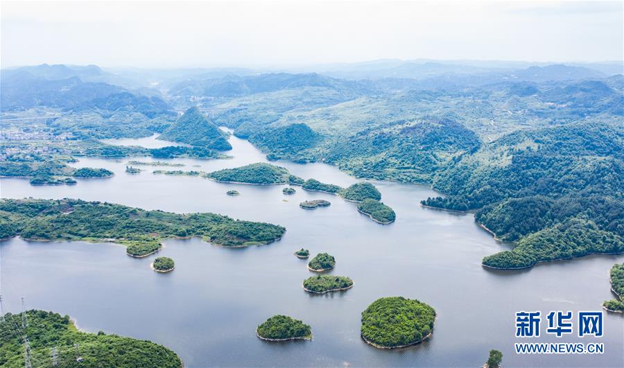 6月2日拍攝的貴陽(yáng)市阿哈湖國(guó)家濕地公園(無(wú)人機(jī)照片)。初夏時(shí)節(jié),貴州省貴陽(yáng)市阿哈湖國(guó)家濕地公園草木蒼翠,風(fēng)景如畫(huà),吸引人們前來(lái)休閑游玩。新華社記者陶亮攝。