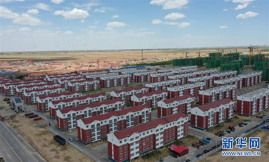 6月2日拍攝的尚義縣大青溝鎮(zhèn)的易地扶貧搬遷集中安置小區(qū)(無人機照片)。新華社記者楊世堯攝。