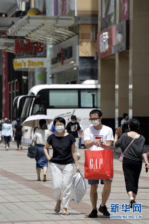6月3日,市民及游客在王府井步行街觀光。近日,游人和市民紛紛來到北京市的王府井、西單、前門大街等著名商業(yè)街購物休閑,這些老商業(yè)街開始逐步恢復昔日的繁華。新華社記者李欣攝。