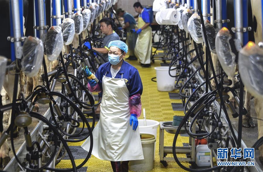 6月3日,村民在深州市榆科鎮(zhèn)郝家莊村奶牛養(yǎng)殖扶貧基地查看擠奶設(shè)備運(yùn)行情況。今年以來(lái),河北省深州市圍繞決勝全面小康、決戰(zhàn)脫貧攻堅(jiān)任務(wù)目標(biāo),在推進(jìn)產(chǎn)業(yè)扶貧的過(guò)程中注重激發(fā)內(nèi)生動(dòng)力,通過(guò)電商扶貧、扶貧車(chē)間、特色種植養(yǎng)殖等多種形式,提升自我“造血”功能,提高貧困群眾受益度。新華社記者李曉果攝。