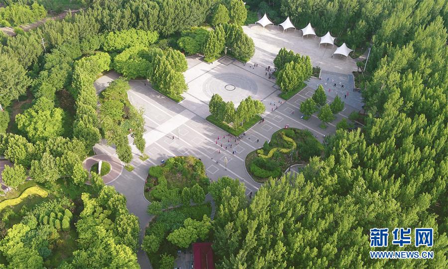 這是6月5日拍攝的文安縣森林公園(無人機(jī)照片)。近年來,河北省文安縣將植樹造林與城市建設(shè)有機(jī)融合,探索“政府引導(dǎo)、企業(yè)運(yùn)作、多方共贏”的市場(chǎng)化植樹造林新模式,大規(guī)模推進(jìn)國土綠化,打造人與自然和諧共生的優(yōu)美生態(tài)環(huán)境,構(gòu)筑京津雄綠色屏障。截至目前,該縣森林覆蓋率已經(jīng)達(dá)到33%,城區(qū)綠地面積達(dá)到36.48%。新華社記者李曉果攝。