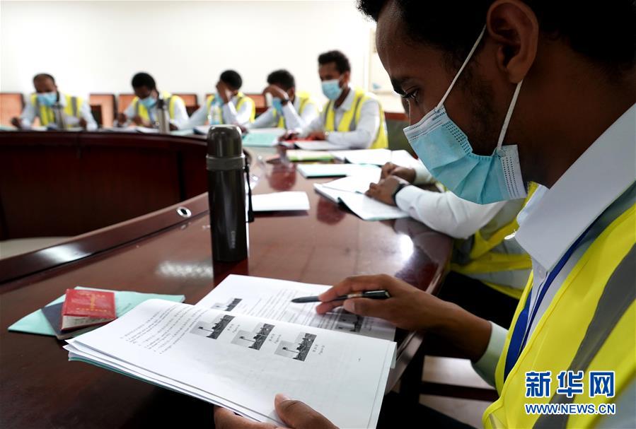 6月5日,在鄭州機務段,特瑞薩(前)為實習做準備工作。 新華社記者 李安 攝