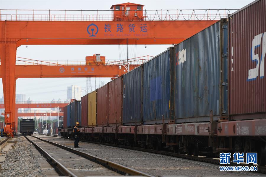 6月6日,合肥首開至荷蘭蒂爾堡的中歐班列(上)準(zhǔn)備從合肥北站物流基地駛出(無(wú)人機(jī)照片)。當(dāng)日,搭載82個(gè)標(biāo)準(zhǔn)集裝箱的中歐班列從中國(guó)鐵路上海局集團(tuán)有限公司合肥貨運(yùn)中心合肥北站物流基地駛出發(fā)往荷蘭蒂爾堡,標(biāo)志著合肥中歐班列通往荷蘭蒂爾堡的線路正式開通。新華社記者張端攝