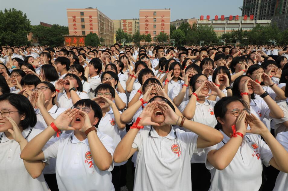 2020年6月6日,河北衡水二中舉行高考倒計時30天勵志動員會,通過向天空喊出夢想的方式幫學(xué)生釋放壓力,振奮精神迎高考。