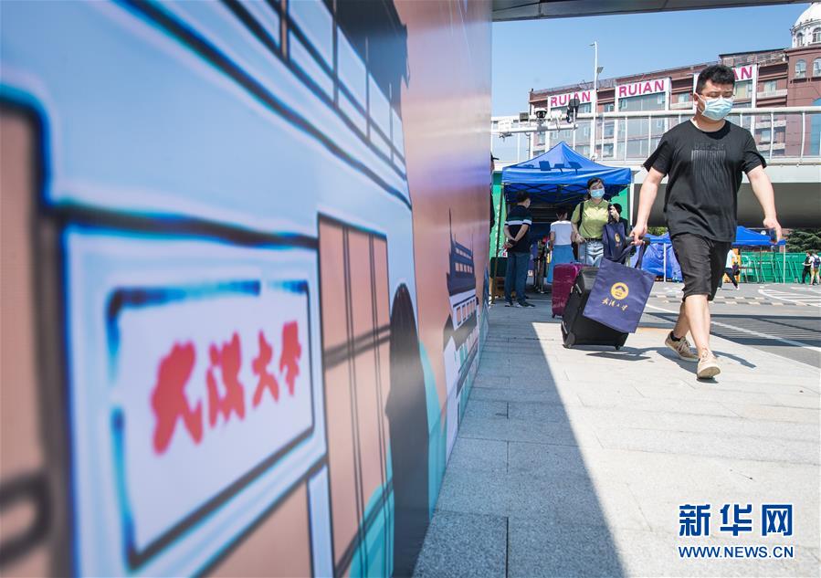 6月8日,在武漢大學(xué),返校學(xué)生步入校園。6月8日起,武漢大學(xué)、華中科技大學(xué)、武漢理工大學(xué)、華中師范大學(xué)等多所武漢高校迎來首批返校畢業(yè)生。新華社記者肖藝九攝