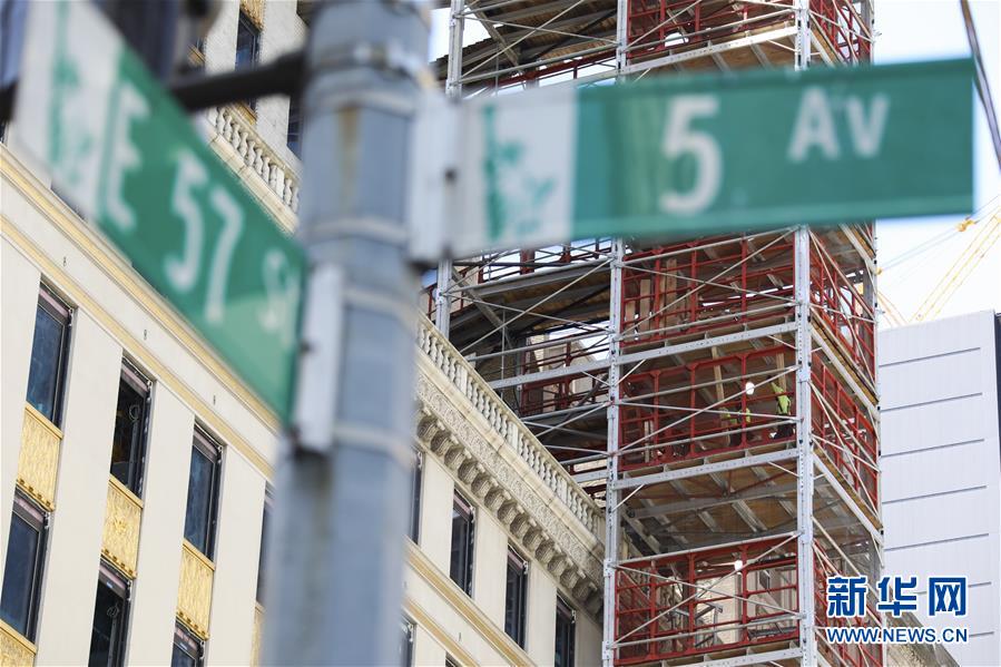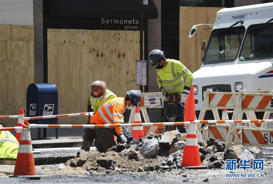 6月8日,工人在美國(guó)紐約的一處工地忙碌。在因新冠疫情進(jìn)入“居家令”近三個(gè)月之后,美國(guó)紐約市于當(dāng)?shù)貢r(shí)間8日開始“解封”,進(jìn)入經(jīng)濟(jì)重啟的第一階段。新華社記者王迎攝