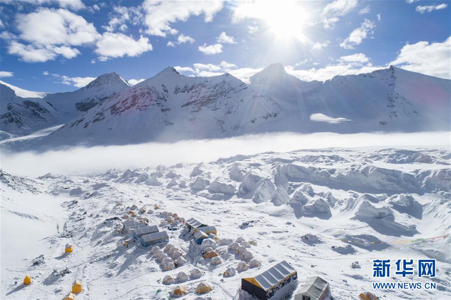 這是海拔6500米的珠峰前進(jìn)營地(無人機(jī)照片,5月22日攝)。從空中俯瞰珠穆朗瑪峰北坡,生機(jī)勃勃的高原濕地、蜿蜒曲折的盤山公路、壯麗秀美的絨布冰川,還有安靜的村莊和熱鬧的登山營地,共同構(gòu)成一幅壯美畫卷。新華社記者晉美多吉攝