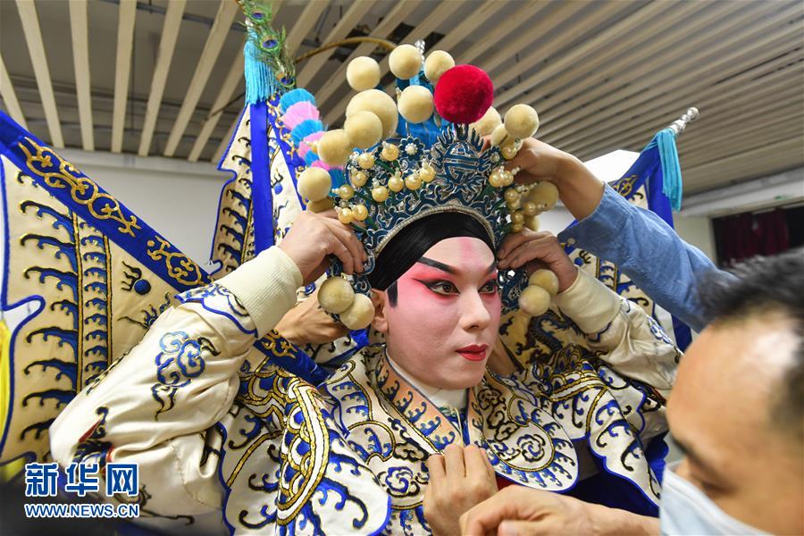 6月12日,廣東粵劇院演員在為演出做準備。當日,廣東粵劇院聯(lián)合酷狗網(wǎng)絡(luò)直播平臺推出“周末睇大戲(線上版)”,將線下劇場轉(zhuǎn)移到線上,在酷狗直播間里呈現(xiàn)粵劇的經(jīng)典劇目,為劇迷們打造一場“云端”盛宴。新華社記者 劉大偉 攝