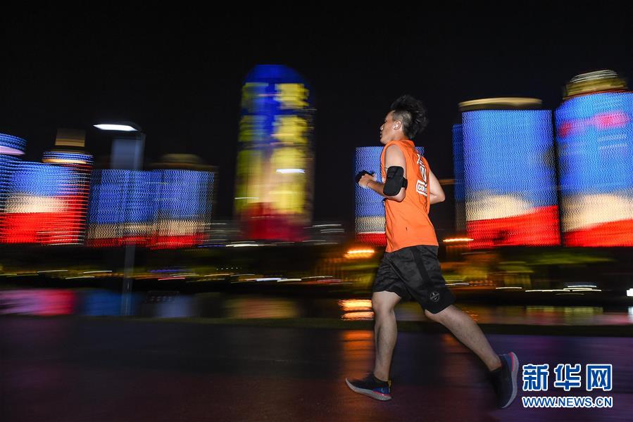一位市民在??谑兰o(jì)公園濱海步道夜跑(5月15日拍攝)。近年來(lái),夜跑成為越來(lái)越多都市人熱衷的健身方式之一。在海南???,每當(dāng)夜幕降臨,“夜跑族”來(lái)到??谌f(wàn)綠園、世紀(jì)公園等夜跑場(chǎng)所跑步,用一身酣暢淋漓的汗水?dāng)[脫白天工作中的壓力,享受跑步帶來(lái)的歡愉。新華社記者 蒲曉旭 攝