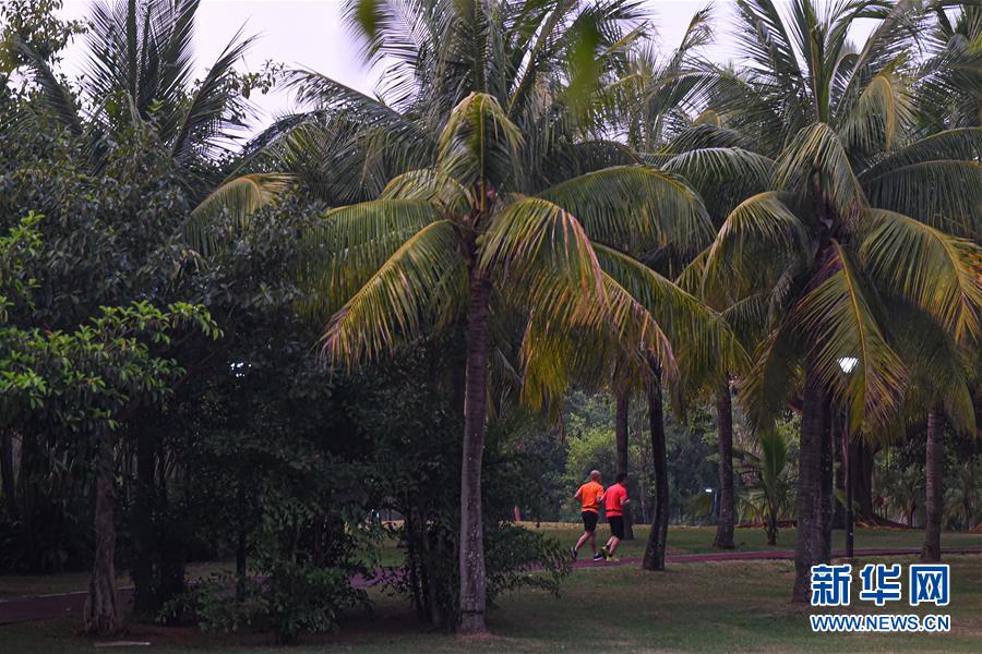 市民在??谌f(wàn)綠園夜跑(5月28日拍攝)。近年來(lái),夜跑成為越來(lái)越多都市人熱衷的健身方式之一。在海南???,每當(dāng)夜幕降臨,“夜跑族”來(lái)到海口萬(wàn)綠園、世紀(jì)公園等夜跑場(chǎng)所跑步,用一身酣暢淋漓的汗水?dāng)[脫白天工作中的壓力,享受跑步帶來(lái)的歡愉。新華社記者 蒲曉旭 攝