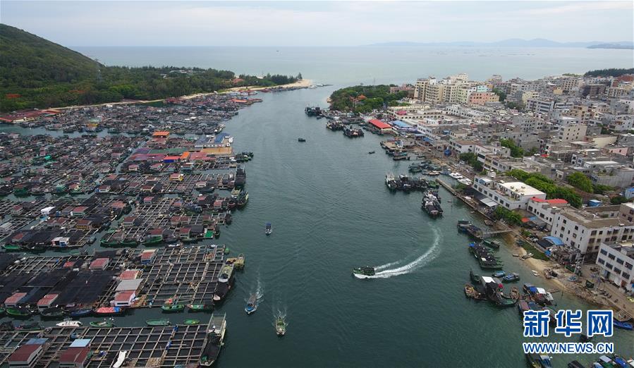 6月13日,漁船陸續(xù)駛回陵水黎族自治縣新村港碼頭內(nèi)停靠避風(fēng)(無人機照片)。當(dāng)日,海南省氣象局于16時30分繼續(xù)發(fā)布臺風(fēng)四級預(yù)警。今年第2號臺風(fēng)“鸚鵡”(熱帶風(fēng)暴級)預(yù)計于14日在廣東沿海登陸。新華社記者楊冠宇攝。