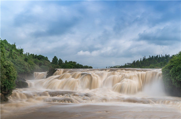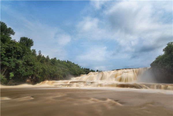2019年6月8日,貴州安順,黃果樹瀑布進(jìn)入豐水期。圖為黃果樹大瀑布上游的陡坡塘瀑布。