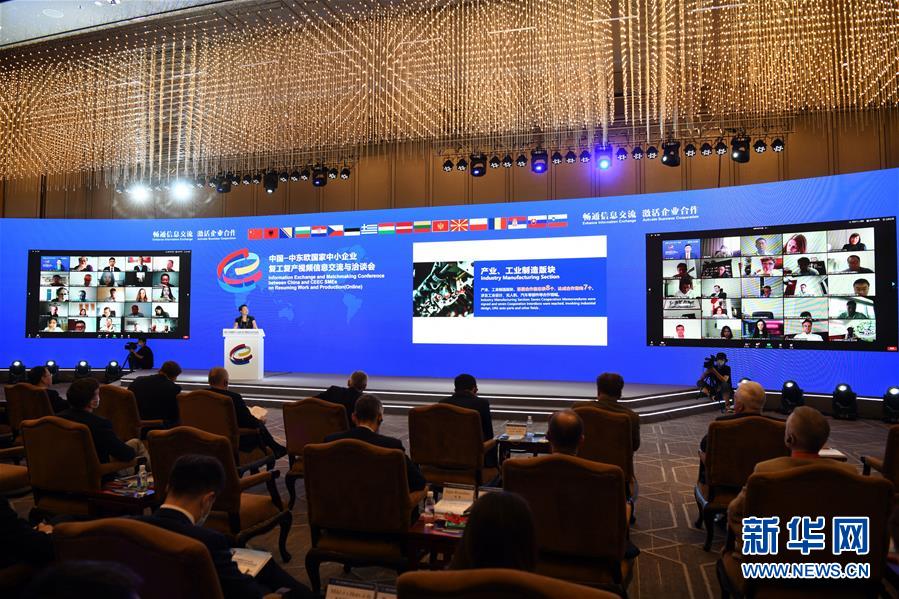 6月16日,中國-中東歐國家中小企業(yè)復(fù)工復(fù)產(chǎn)視頻信息交流與洽談會(huì)在北京舉行,河北省滄州市設(shè)分會(huì)場。本次會(huì)議以“暢通信息交流,激活企業(yè)合作”為主題,157家來自中國與135家來自17個(gè)中東歐國家的中小企業(yè)和機(jī)構(gòu)圍繞“產(chǎn)業(yè)、工業(yè)制造”“貿(mào)易投資、農(nóng)業(yè)”“旅游、人文交流”“醫(yī)療衛(wèi)生”四大版塊進(jìn)行洽談對(duì)接。新華社記者 金良快 攝