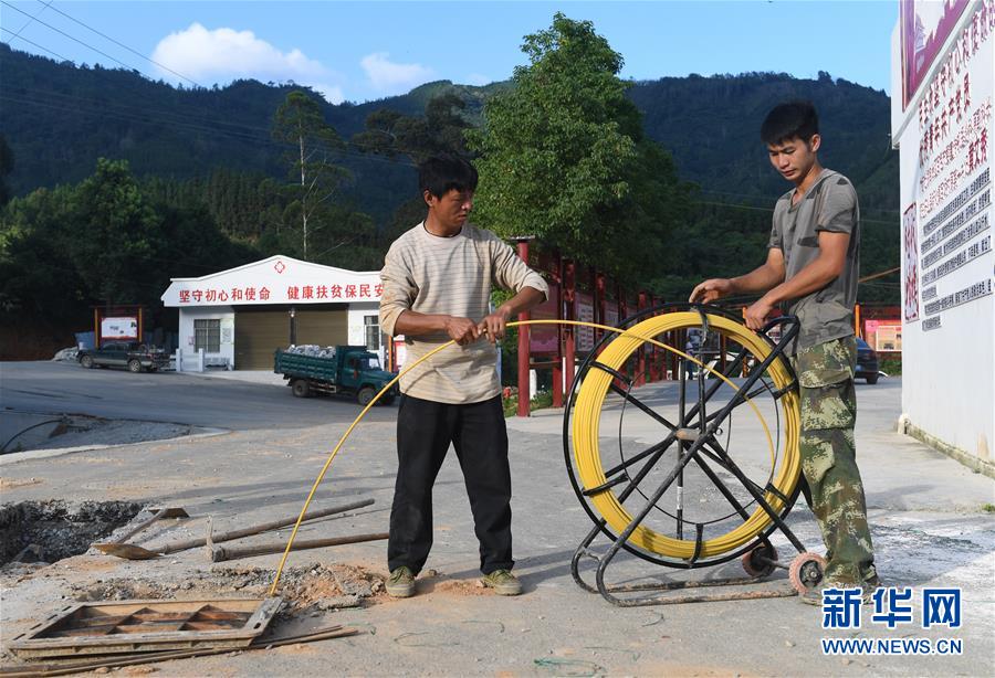 兩名工人在百坭村施工(6月16日攝)。新華社記者 陸波岸 攝