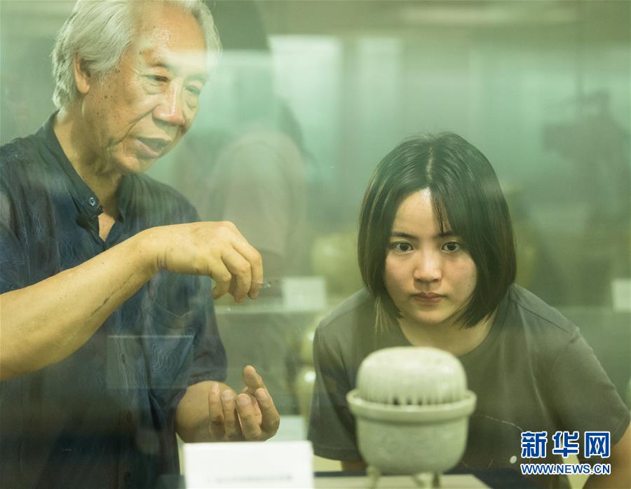 6月17日,在浙江慈溪,聞長慶向陶瓷愛好者介紹自己燒制的熏爐。新華社記者 翁忻旸 攝
