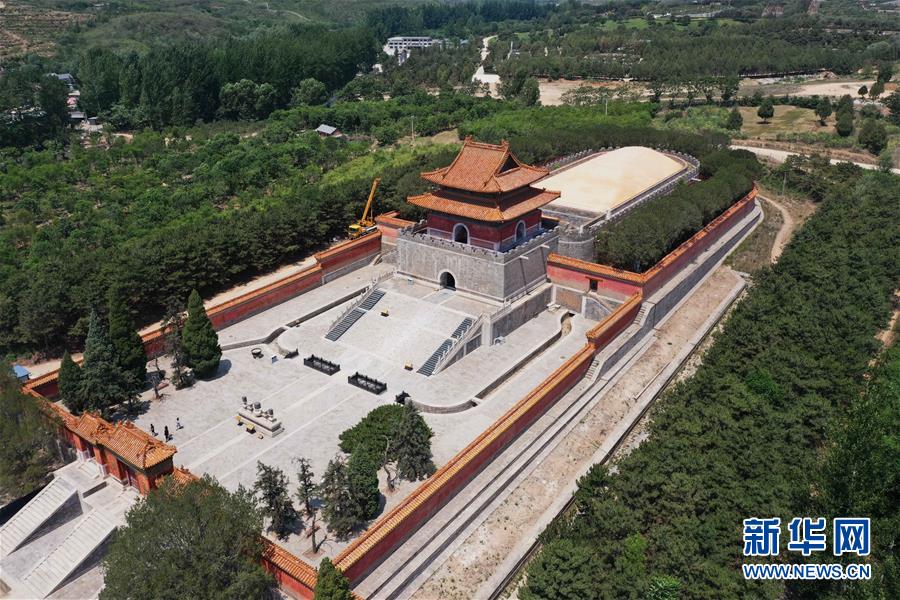 這是清西陵崇陵明樓和寶頂(6月18日攝,無人機(jī)照片)。新華社記者朱旭東攝