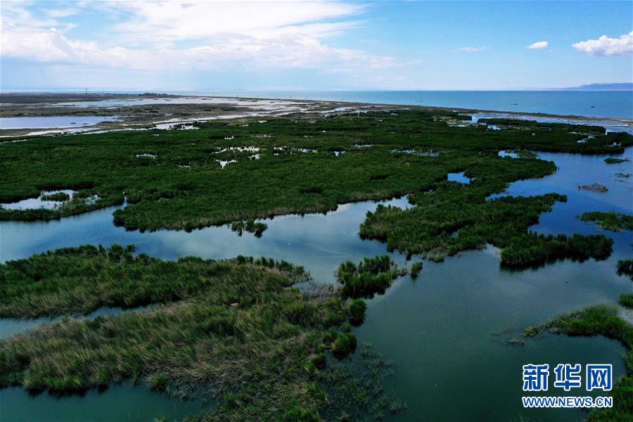 6月19日拍攝的新疆烏倫古湖國家濕地公園(無人機照片)。烏倫古湖國家濕地公園位于新疆阿勒泰地區(qū)福??h城以西,由烏倫古湖和吉力湖兩部分組成。烏倫古湖濕地公園是遷徙候鳥飛越天山和阿爾泰山的“能量補充站”,良好的濕地生態(tài)吸引著大量遷徙鳥類在此集結(jié)成群,繁殖棲息,成為一道靚麗的風景線。新華社記者 沙達提 攝