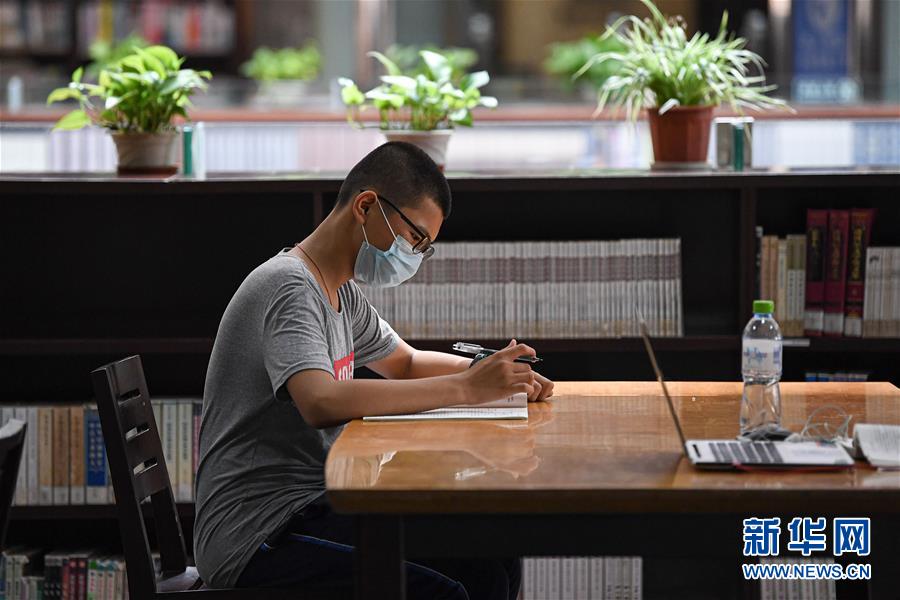 6月21日,市民在海南省圖書館學(xué)習(xí)。近日,海口持續(xù)高溫,不少市民在做好疫情防控的前提下來到海南省圖書館,在涼爽、清靜的環(huán)境里閱讀學(xué)習(xí),充實(shí)自我。新華社記者蒲曉旭攝
