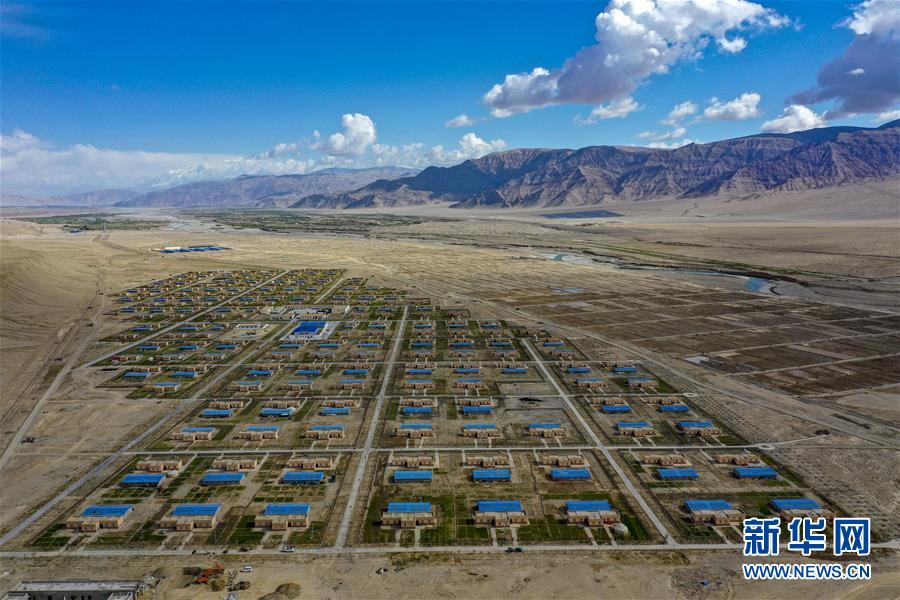 新疆塔什庫爾干塔吉克自治縣塔提庫力易地扶貧搬遷安置點(6月15日攝,無人機照片)。新華社記者胡虎虎攝