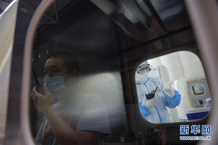 6月22日拍攝的建在北京大興體育中心綜合館的氣膜版“火眼”核酸檢測實(shí)驗(yàn)室。新華社記者彭子洋攝