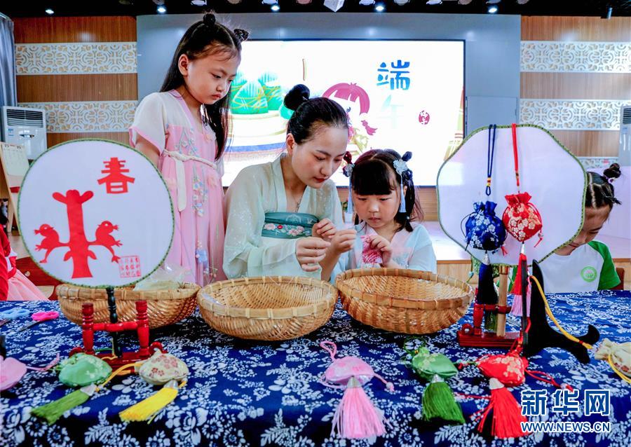 6月23日,長興縣李家巷鎮(zhèn)中心幼兒園的孩子們在老師的帶領(lǐng)下,一起制作端午香囊。為了迎接即將到來的端午節(jié),浙江省湖州市長興縣各個(gè)幼兒園開展“品民俗迎端午”主題活動,讓小朋友們體驗(yàn)傳統(tǒng)民俗文化。新華社記者徐昱攝