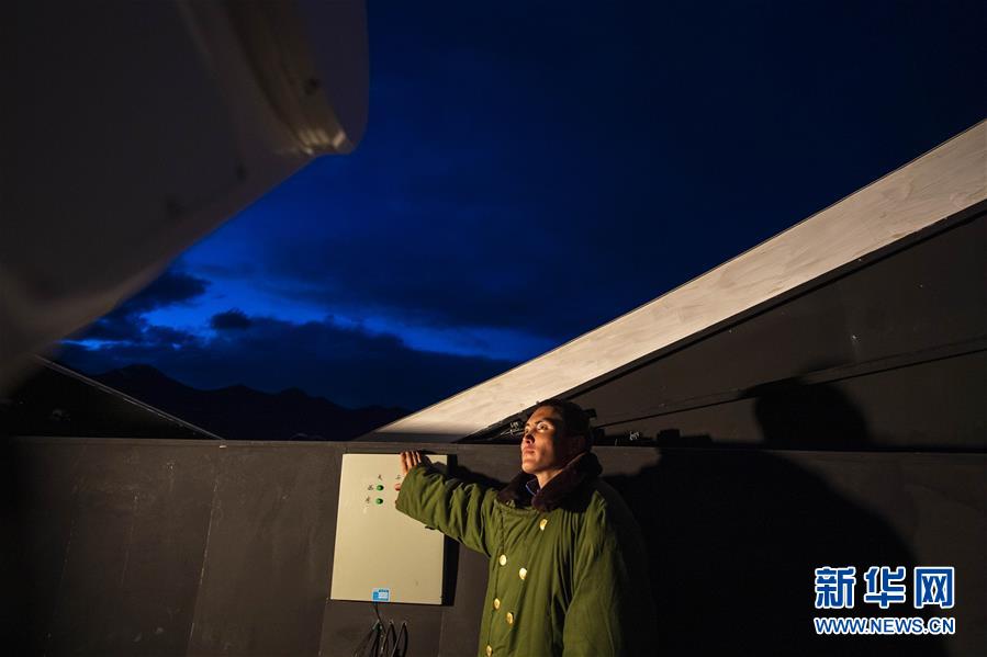 在中國科學(xué)院新疆天文臺慕士塔格觀測站,助理觀測員阿克力·圖拉提開啟望遠(yuǎn)鏡圓頂,準(zhǔn)備開始當(dāng)晚的觀測(6月15日攝)。新華社記者胡虎虎攝