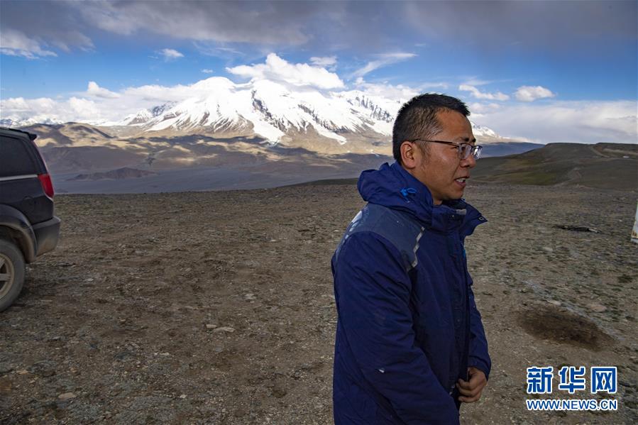 到達慕士塔格觀測站后,冷風(fēng)襲來,馮國杰穿上沖鋒衣,拉上拉鏈(6月15日攝)。新華社記者胡虎虎攝
