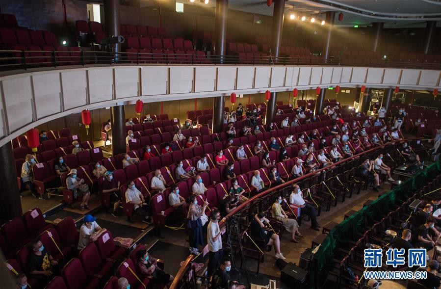 6月26日,市民掃健康碼登記后進(jìn)入武漢市人民劇院。當(dāng)日,武漢市中心7家劇場恢復(fù)開放,各大文藝院團(tuán)恢復(fù)線下演出,市民再次坐在劇場內(nèi)觀看“戲碼頭”上群星云集、百戲薈萃。新華社記者 肖藝九 攝