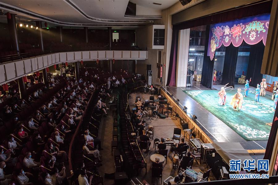 6月26日,市民在武漢市人民劇院觀看漢劇《狀元媒》。新華社記者 肖藝九 攝
