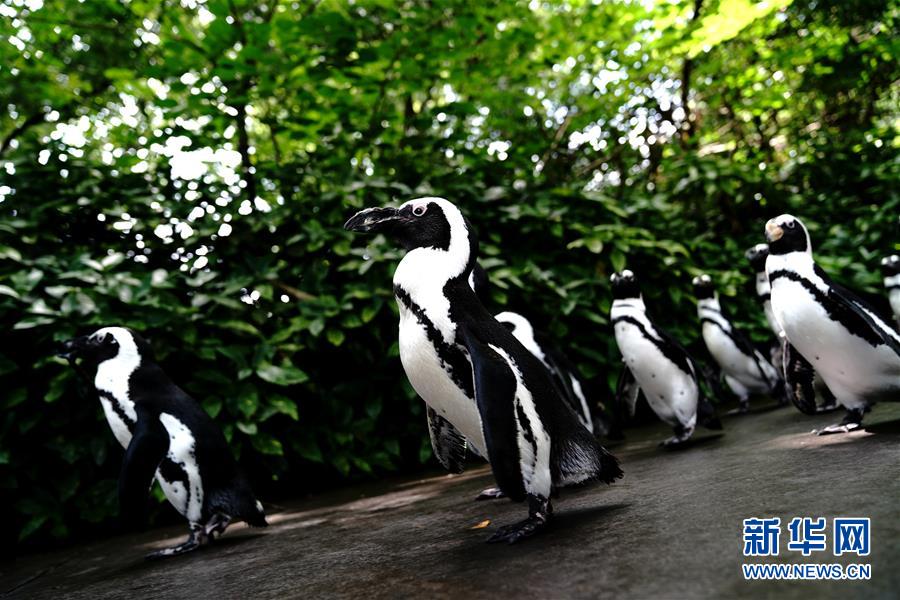 6月26日,上海動(dòng)物園的企鵝在園內(nèi)漫步。新華社記者 張建松 攝