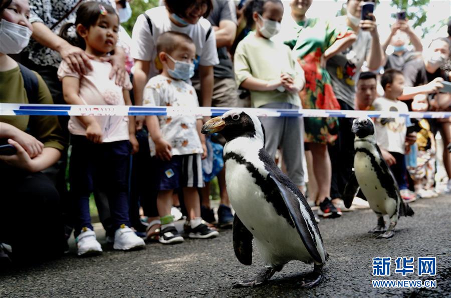 6月26日,上海動(dòng)物園飼養(yǎng)員引導(dǎo)企鵝在園內(nèi)漫步。端午小長(zhǎng)假第二天,上海動(dòng)物園開展“企鵝漫步科普行”活動(dòng),受到游客歡迎。新華社記者 張建松 攝