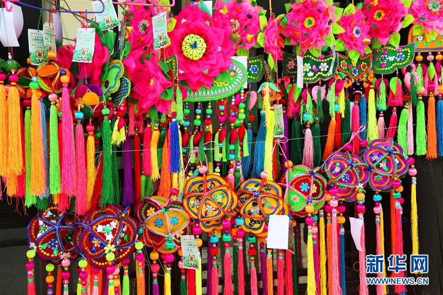 青海省互助土族自治縣舉辦的端午節(jié)香包“選美”大賽上展出的各類香包(6月24日攝)。新華社記者解統(tǒng)強(qiáng)攝