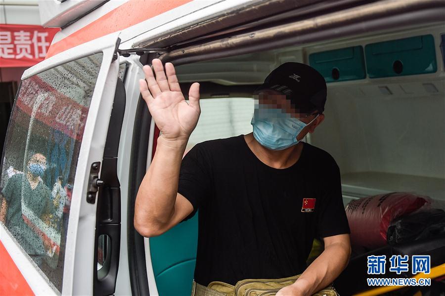 6月29日,在北京地壇醫(yī)院,患者何先生向醫(yī)生揮手道別。新華社記者彭子洋攝