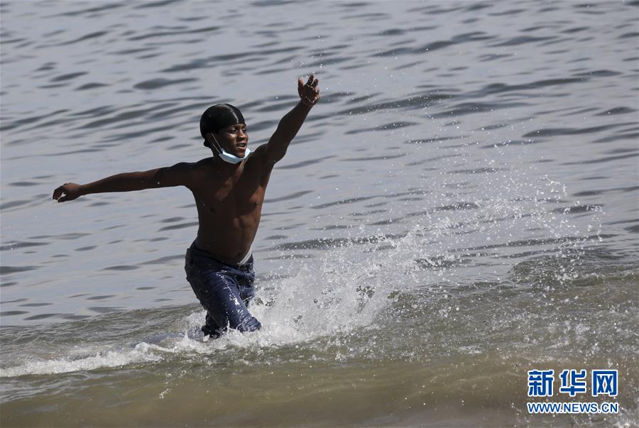 7月1日,一名少年在美國紐約科尼島戲水。當(dāng)日,美國紐約市屬八處海灘正式重新準許民眾游泳,救生員也同時上崗。新華社記者王迎攝