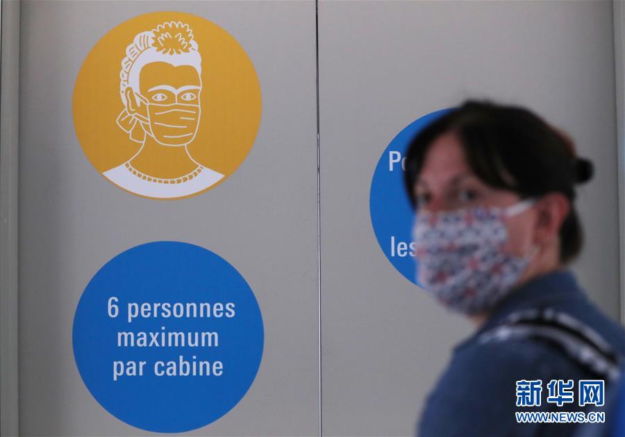 7月1日,法國巴黎蓬皮杜藝術中心的電梯上貼著“請佩戴口罩”和“最多6人乘梯”的標識。因新冠疫情關閉的法國巴黎蓬皮杜藝術中心于7月1日重新開門迎客。目前,中心只開放6層的臨時展區(qū)和4、5層的現(xiàn)代藝術常設展區(qū)。參觀者需提前網上預約參觀時段,11歲以上參觀者須佩戴口罩,參觀過程中保持安全距離。新華社記者高靜攝