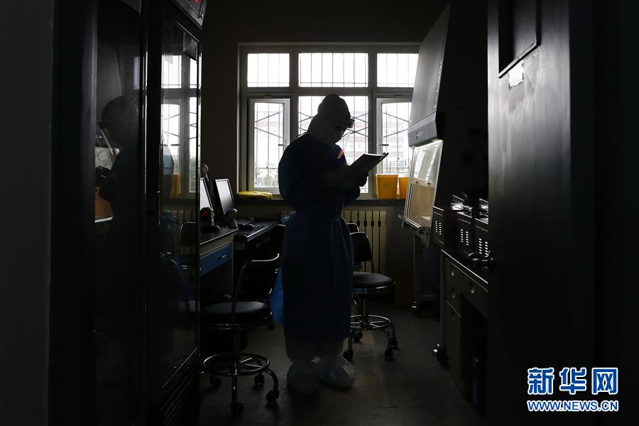 7月3日,中日友好醫(yī)院檢驗(yàn)科新冠核酸檢測(cè)實(shí)驗(yàn)室的檢驗(yàn)人員張?chǎng)卧趯?shí)驗(yàn)室內(nèi)查看樣本。新華社記者張玉薇攝