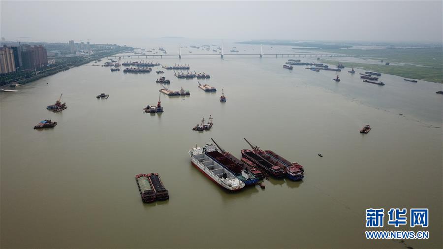 7月5日拍攝的岳陽洞庭湖主航道(無人機照片)。受持續(xù)強降雨和上游來水影響,洞庭湖城陵磯水位持續(xù)上漲。水文監(jiān)測數(shù)據(jù)顯示,截至7月5日16時,洞庭湖城陵磯水位達到32.75米,超警戒水位0.25米。當?shù)胤姥床块T正嚴密監(jiān)控水情雨情,備好防汛物資并加強應急值守,力爭安全度汛。新華社記者陳澤國攝