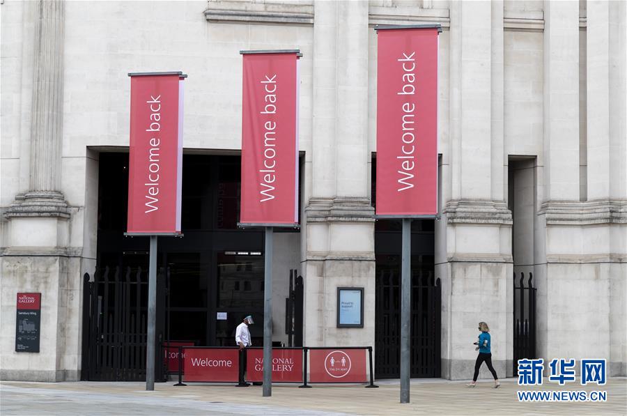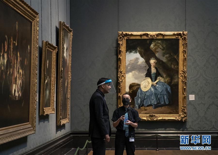 7月4日,參觀者佩戴口罩在英國(guó)國(guó)家美術(shù)館的媒體開放日上參觀。新華社記者韓巖攝