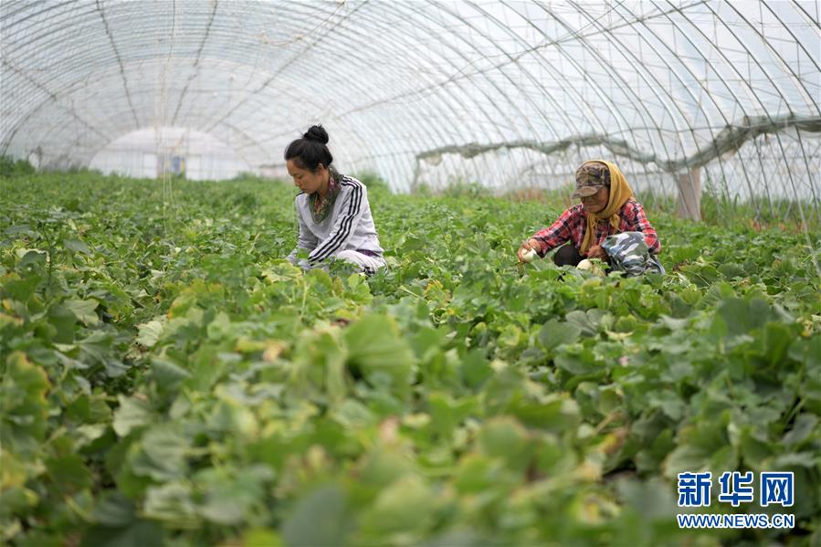 7月5日,在黑龍江省肇東市昌五鎮(zhèn)昌盛村農(nóng)業(yè)生態(tài)觀光園扶貧大棚,村民在采摘香瓜。黑龍江省肇東市昌五鎮(zhèn)昌盛村農(nóng)業(yè)生態(tài)觀光園占地千余畝,融合了種植采摘、民俗產(chǎn)品展銷、旅游觀光等項目,方便周邊農(nóng)民就近就業(yè),助力脫貧增收。新華社記者王建威攝