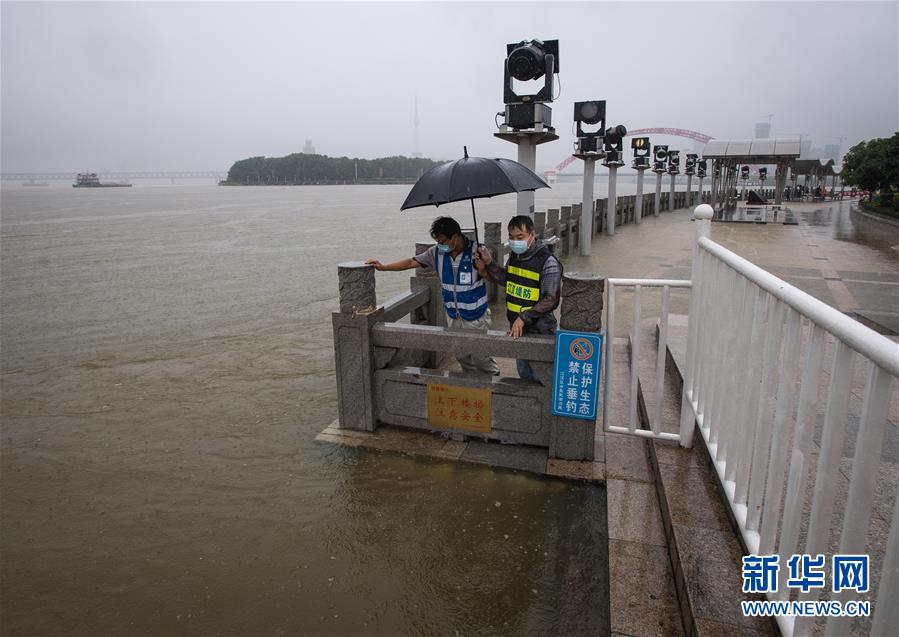 7月6日,工作人員在武漢龍王廟觀察水情。記者6日從武漢市防汛抗旱指揮部辦公室獲悉,5日以來,武漢遭暴雨襲擊,全市多處路段漬水。至6日4時(shí),長江漢口站超設(shè)防水位1.79米,漢江新溝站超警戒水位0.01米。鑒于當(dāng)前水雨汛情和漬澇情況,武漢市從6日5時(shí)起,將排澇應(yīng)急響應(yīng)級別提升至Ⅱ級;從6時(shí)30分起,將防汛應(yīng)急響應(yīng)級別提升至Ⅱ級。新華社記者肖藝九攝