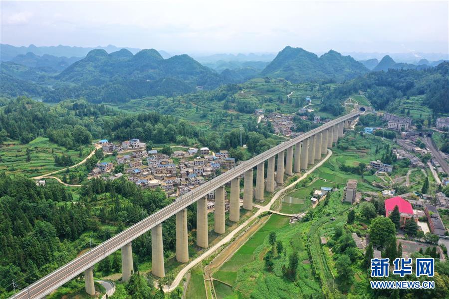 7月6日拍攝的安六鐵路岱港村特大橋(無(wú)人機(jī)照片)。當(dāng)日,新建貴州安六鐵路(安順至六盤(pán)水)聯(lián)調(diào)聯(lián)試工作進(jìn)入收尾階段,開(kāi)通前的各項(xiàng)準(zhǔn)備工作已基本就緒。安六鐵路線路全長(zhǎng)約125公里,設(shè)計(jì)時(shí)速250公里,為國(guó)家I級(jí)雙線客運(yùn)專線。建成投用后,貴陽(yáng)至六盤(pán)水的鐵路旅行時(shí)間可從現(xiàn)在的3.5小時(shí)縮短為1小時(shí)左右,貴州省六盤(pán)水市將全面接入全國(guó)高鐵網(wǎng)。新華社記者劉續(xù)攝