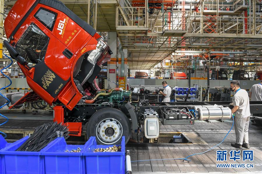 在位于長春市的一汽解放總裝車間,工人在裝配車輛(6月19日攝)。中國第一汽車集團披露,截至6月30日,集團上半年共計生產(chǎn)整車162.23萬輛,同比增長1.5%;銷售整車163.09萬輛,同比增長2.3%。新華社記者張楠攝