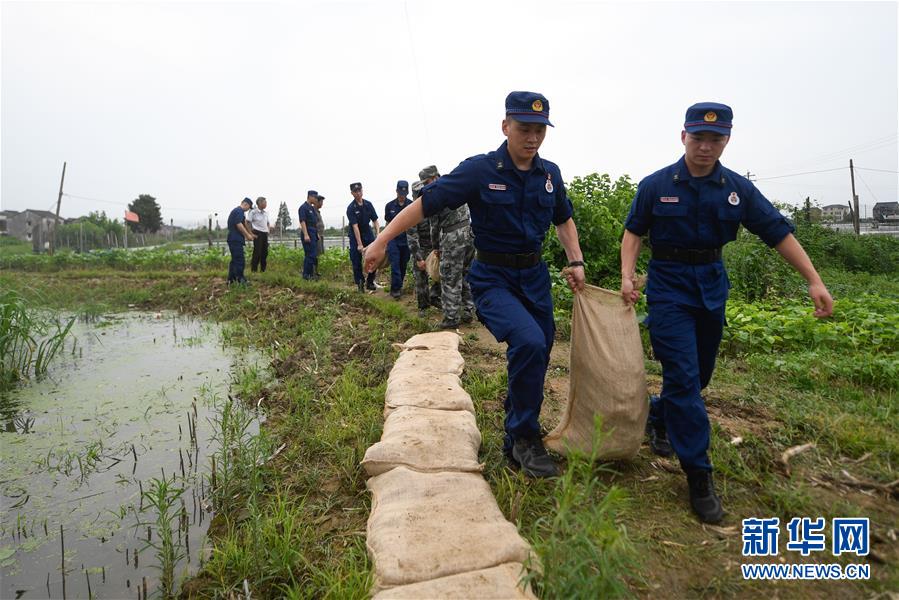7月7日,吳興區(qū)消防救援大隊隊員在織里鎮(zhèn)曹家籪村幫助村民加固防洪堤。近日,位于浙江北部的湖州市遭遇多輪降雨,東部平原河網(wǎng)普遍超警戒水位,水庫山塘高位運行。7月5日12時30分,湖州市人民政府防汛防旱指揮部將防汛應(yīng)急響應(yīng)提升至Ⅲ級,要求各地密切監(jiān)測汛情,切實做好各項防范工作,確保安全度汛。新華社記者黃宗治攝