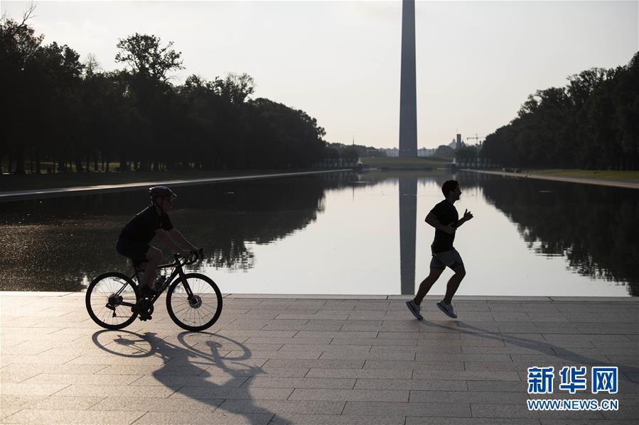 7月8日,在美國華盛頓,人們在林肯紀念堂倒影池旁運動健身。美國約翰斯·霍普金斯大學(xué)8日發(fā)布的新冠疫情最新統(tǒng)計數(shù)據(jù)顯示,美國累計確診病例超過300萬例。數(shù)據(jù)顯示,截至美國東部時間8日11時34分(北京時間23時34分),美國累計確診病例3016515例,累計死亡病例131594例。新華社記者劉杰攝